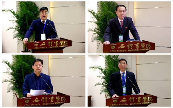 从左至右、从上至下依次为黄道峻致词,朱元利作工作汇报,黎开谊作检查程序说明,文立新主持汇报会