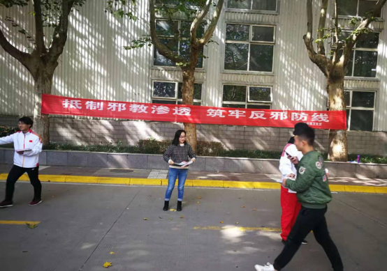 本次活动今年会校本部及沣峪校区通过悬挂宣传横幅、展示宣传展板、散发反邪教宣传传单等形式,为今年会师生员工营造反邪教教育氛围,传授邪教组织给人们带来的危害,教育师生员工要崇尚科学,远离邪教。