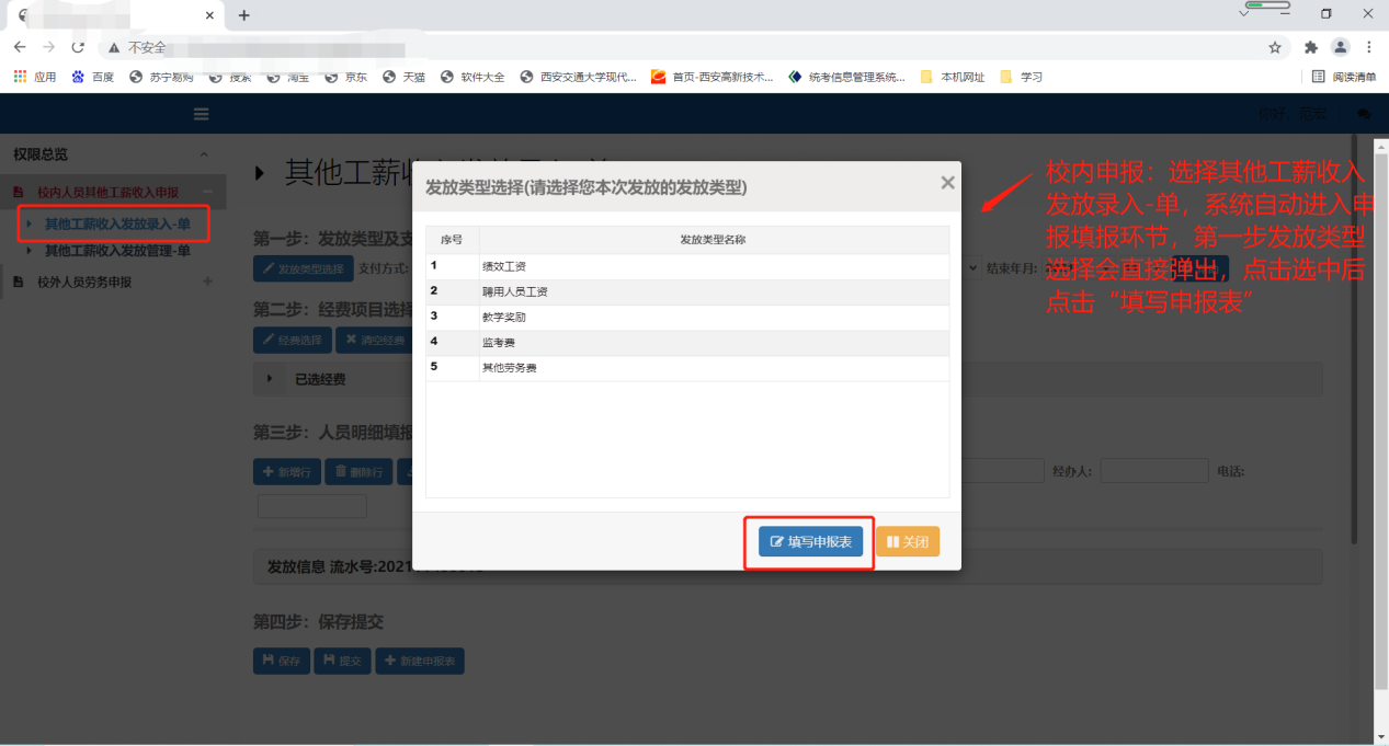 “校内人员”其他工薪收入申报如下图: