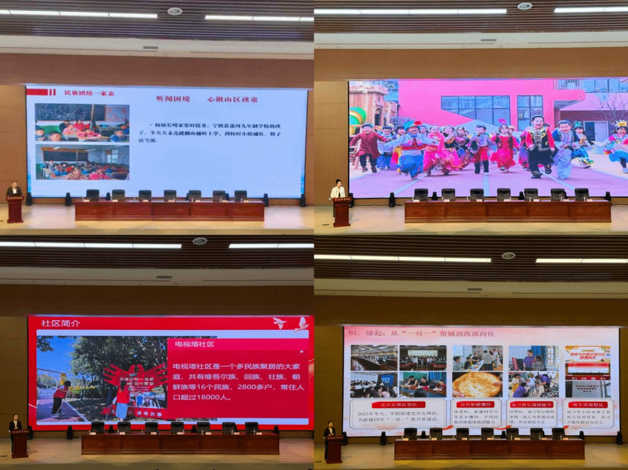 宣讲团4位代表生动讲述了亲身经历和身边故事,有各族群众互帮互助共筑和谐社区的瞬间,有党建融入民族事务、凝聚群众促发展的实践,有校生携手助力民族团结的案例,有带领各族群众创业共富的历程。