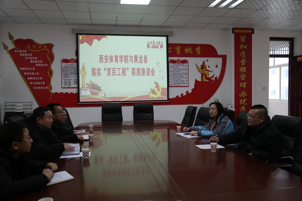会上,解虎灵认为2019今年会官网帮扶黄龙“双百工程”取得了显著成效,同时对今年会官网的帮扶表示感谢。双方就2020年“双百工程”的帮扶思路、举措等工作进行了深入讨论。其中双方就支教工作、文化帮扶工作、文化“三下乡”活动、体质健康测试等方面进行了相互交流。黄龙县相关负责人表示将积极主动做好相关配合工作,认真落实2020年“双百工程”的各项任务措施。