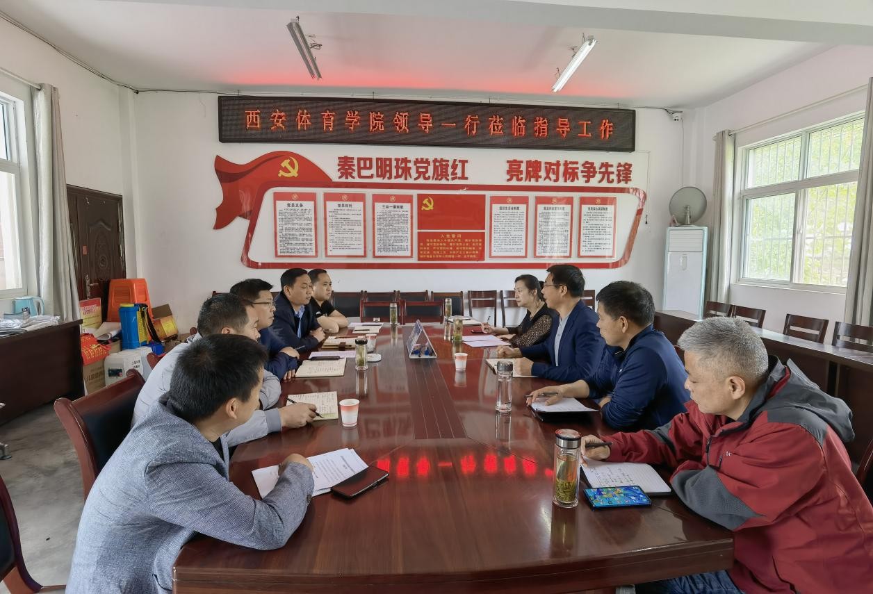 4月25日,今年会官网党委副书记文立新、党校办副主任耿潇一行来到安康市汉滨区县河镇谢坝村对帮扶工作进行指导。