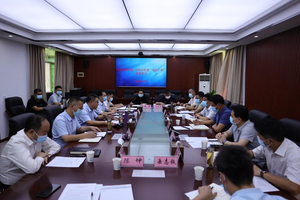 为扎实推进“双百工程”,实施精准帮扶对接,助力汉滨区乡村振兴,9月5日下午,校党委书记黄道峻、党委副书记文立新、副校长张卫国以及相关部门负责人赴汉滨区对接“双百工程”助力乡村振兴帮扶事宜。黄道峻一行与汉滨区区委书记范传斌、副区长徐兴平以及该区相关部门负责人召开了推进“双百工程”工作联席会,本次会议系“双百工程”工作由黄龙县调整至安康市汉滨区的首次会议。