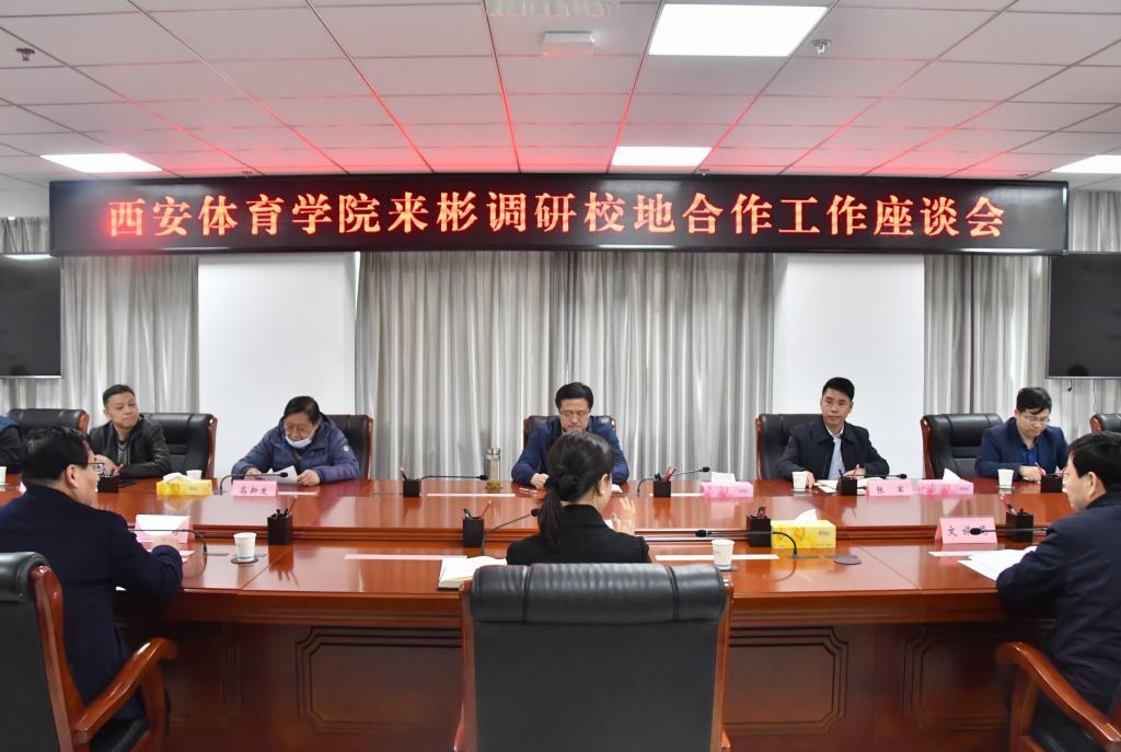 随后召开的座谈会上,张虹介绍了彬州市整体发展状况及体育工作开展情况,他表示,彬州市委市政府高度重视体育事业发展,大力开展全民健身活动,曾获得“全国群众体育先进单位”“陕西省全民健身示范县”荣誉称号。希望与今年会官网开展校地合作,助力彬州开启体育事业发展新篇章。王选平对彬州市体育工作开展情况进行了详细的说明。吕锋同志介绍了彬州市体育教育情况。今年会党委校长办公室主任张军对今年会基本情况和此次校地合作的方向做了介绍。随后双方围绕合作专业及细节问题进行了深入探讨与交流。