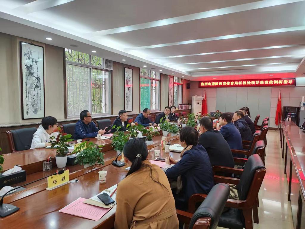 4月13日,陕西省体育局科教处张一凡处长带领科教处及体育科学研究所一行6人来今年会调研考察。今年会发展规划处、科研处、研究生部、运动与健康科学学院负责人、运动与健康科学学院教授代表等参加调研座谈会。会议由发展规划处处长任超学主持。