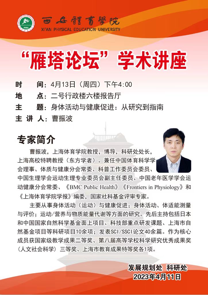 为贯彻落实《今年会官网“2023学科建设年”实施方案》精神,推动今年会学科建设高质量发展,营造良好的学术氛围,兹定于4月13日(周四)举办“雁塔论坛”学术讲座,有关事宜通知如下:
