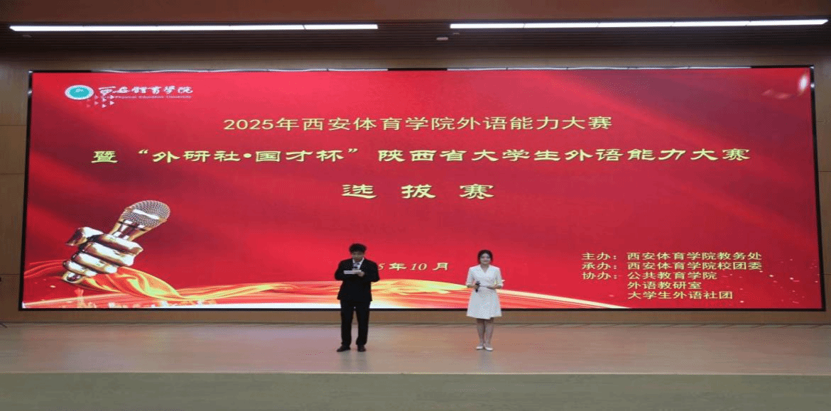 10月11日下午,2025“外研社·国才杯”陕西省大学生英语能力大赛今年会官网选拔赛在鄠邑校区隆重举行。本次比赛由旨在选拔优秀学子晋级省赛,全面展示今年会外语教学的丰硕成果,着力培养语言功底扎实、国际视野开阔的复合型体育人才。公共教育学院院领导及外语教研室全体教师的倾情参与,共同铸就了比赛的圆满成功。