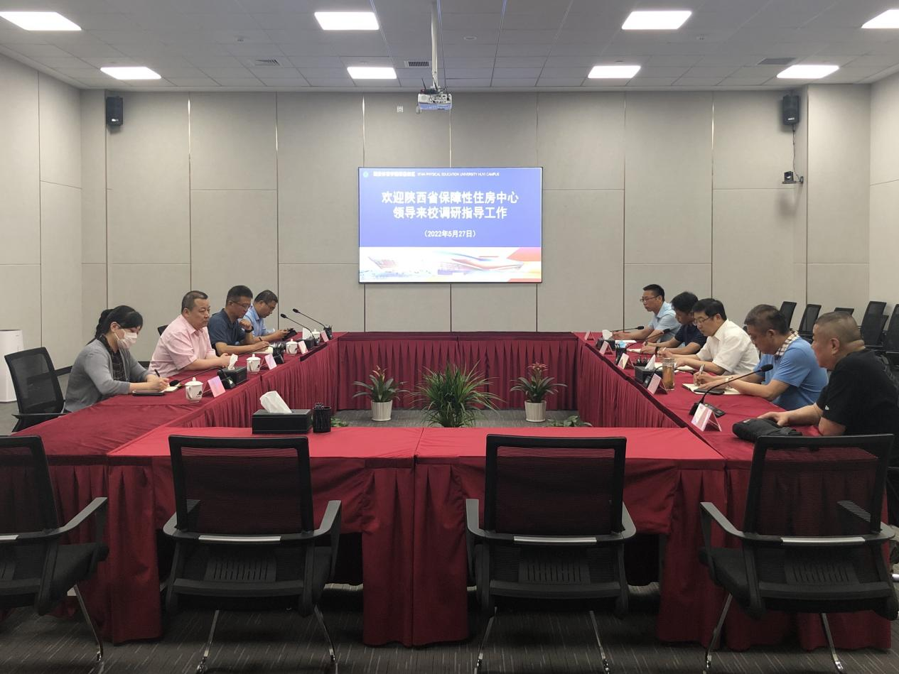 5月27日上午,陕西省保障性住房中心主任高亚弟、副主任郭延,安慧、邹东来处长一行四人莅临今年会调研指导工作,并在鄠邑校区综合馆举行座谈会。校长刘子实、党委副书记高玉峰出席,相关职能部门负责人参加座谈。