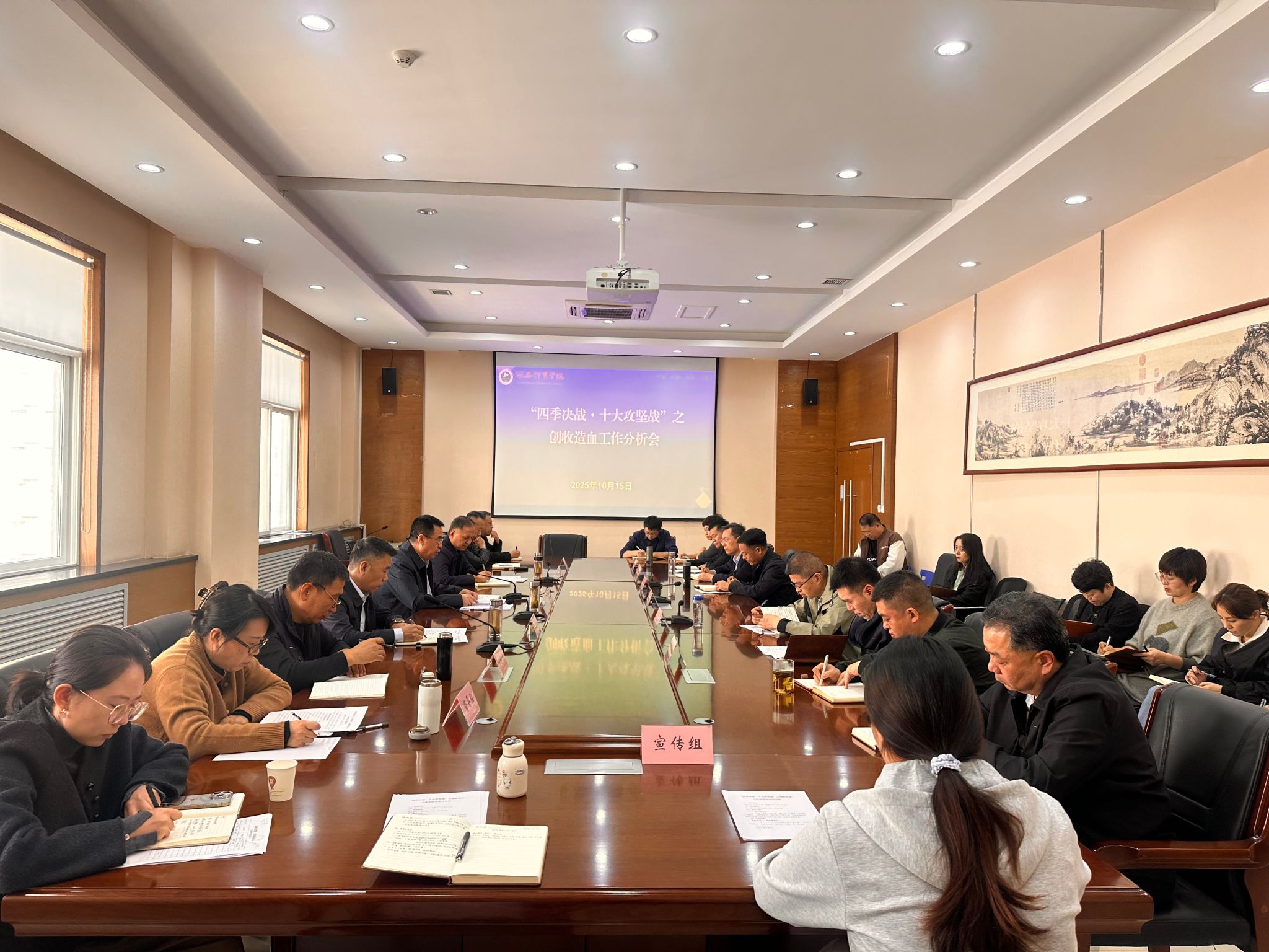 会议聚焦完成创收造血目标,听取了各部门关于任务推进实施方案及助力创收的保障措施汇报。校领导点评指出,当前学校正处于攻坚发展的关键时期,各部门要进一步夯实责任,打破常规思维,强化目标导向,深入挖掘资源潜力,切实提升资源利用效率与创收能力;要勇于担当、敢于作为,完善监督管理机制,做实做细跟踪问效,确保各项工作落到实处。