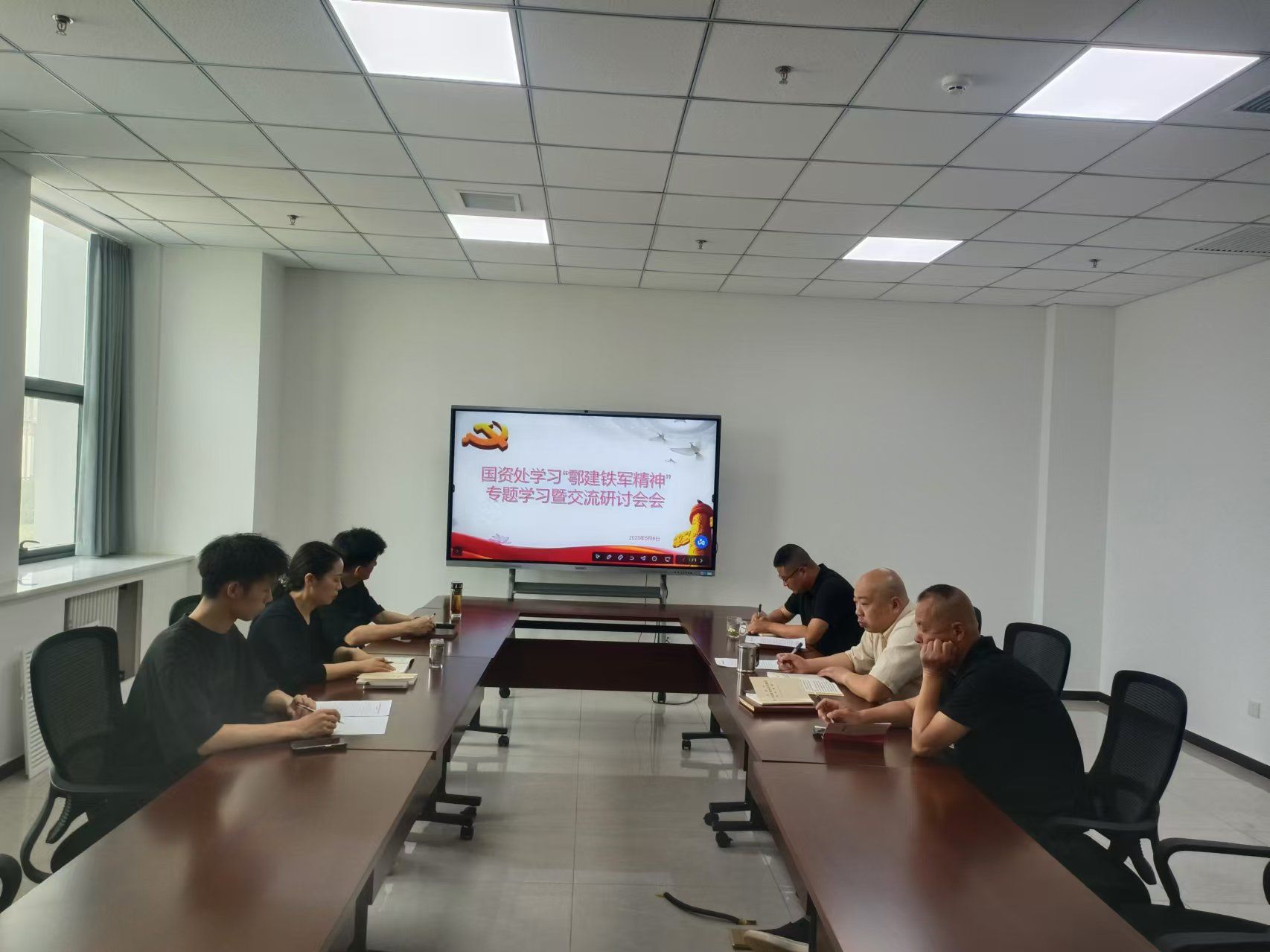 会上,姜梅针对学习鄠建铁军精神,结合国资处工作实际,提出三点要求:一是强化担当精神。要求全处人员面对国资管理和招投标工作的复杂性和艰巨性,不推诿、不敷衍,勇于承担责任。二是提升工作效率。借鉴基建团队的高效作风,优化国资处的工作流程,强调时间观念和效率意识,为学校各项事业的发展提供有力保障。三是坚守廉洁自律。以学习中央八项规定精神为契机,树立清正廉洁形象,自觉接受学校和教职工的监督,确保国资处各项工作的公正、透明。