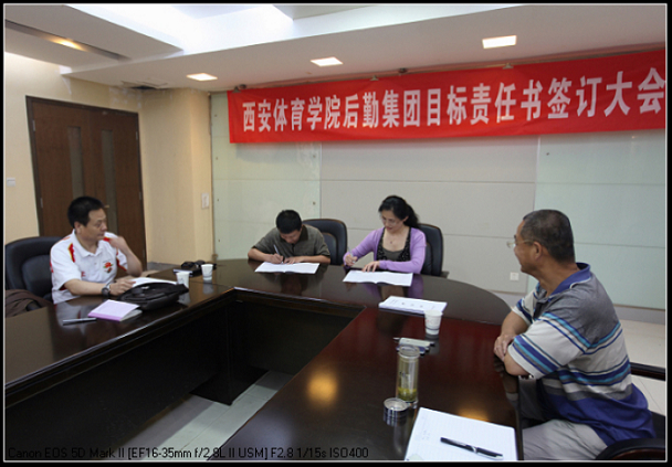 为了确保后勤集团2011年各项工作任务的顺利完成,5月20日下午后勤集团在交流中心会议室召开了《2011年双目标责任制》签订大会。总经理雷甲谋、总支书记王义勇、副总经理朱舰分别与分管中心负责人签订了目标责任书。