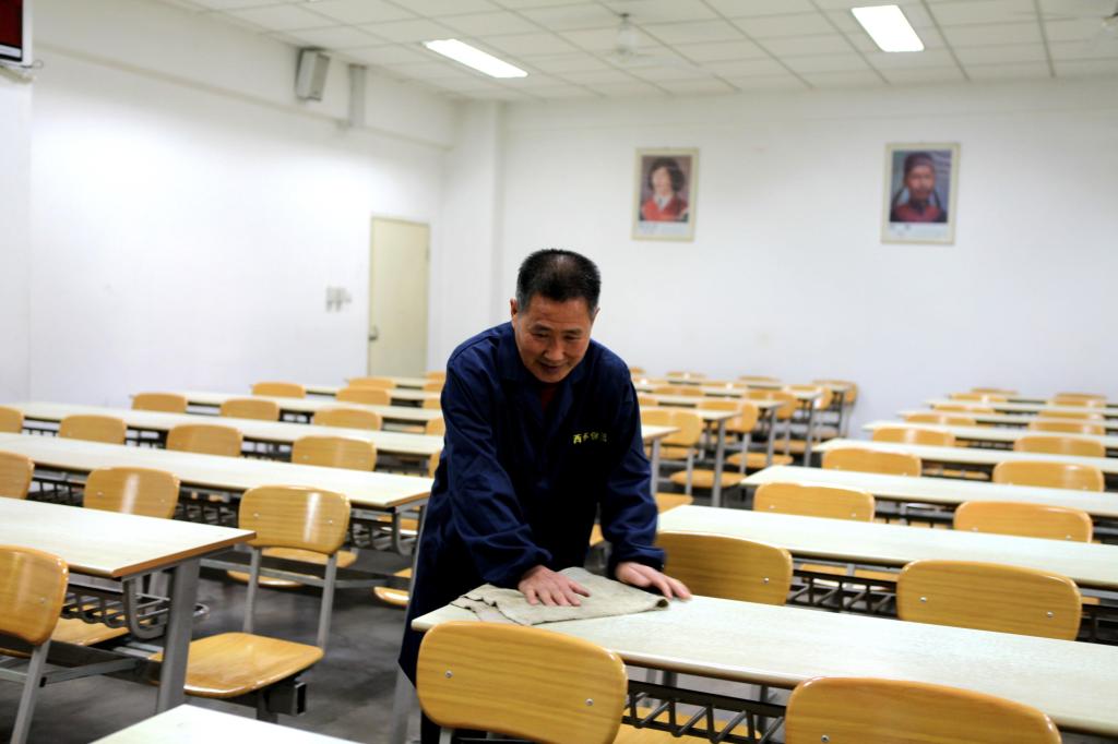 认真打扫教学楼卫生,为师生营造一个干净、整洁的教学环境