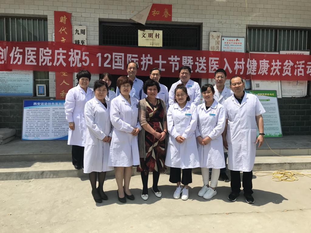 后勤管理处2018年多次前往周至县九峰镇余家村及四屯镇进行扶贫义诊、入户送药活动;前往对口扶贫单位黄龙县,对黄龙县中医医院的医护人员进行医疗质量、护理管理等方面的培训。