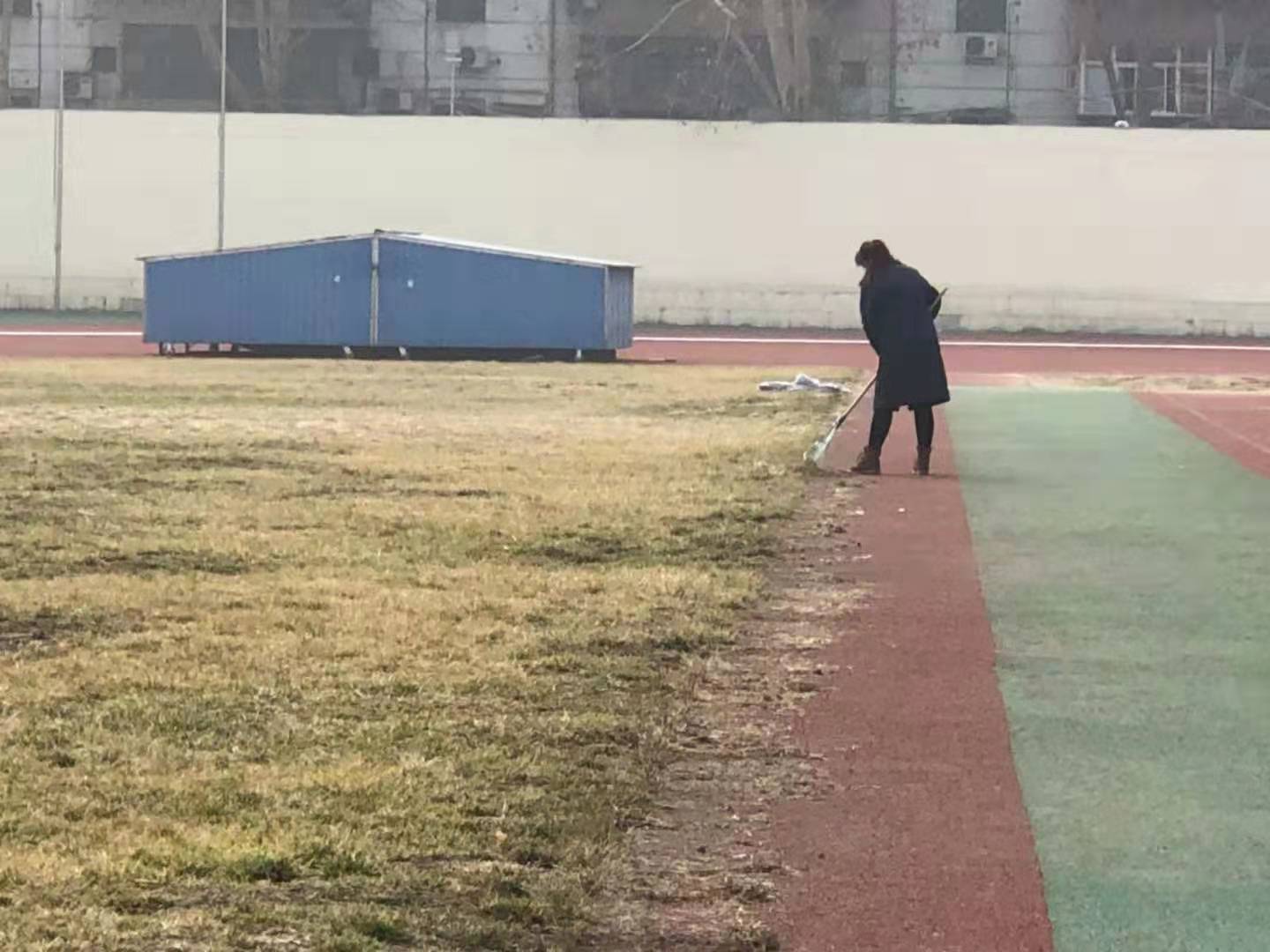 工作人员在场馆中心负责人的带领下,清点运动器材,并将其归类摆放,冲洗运动场地、防滑地毯,擦拭场馆器具、门窗,为返校师生营造一个舒适、温馨的学习、训练、科研场所。