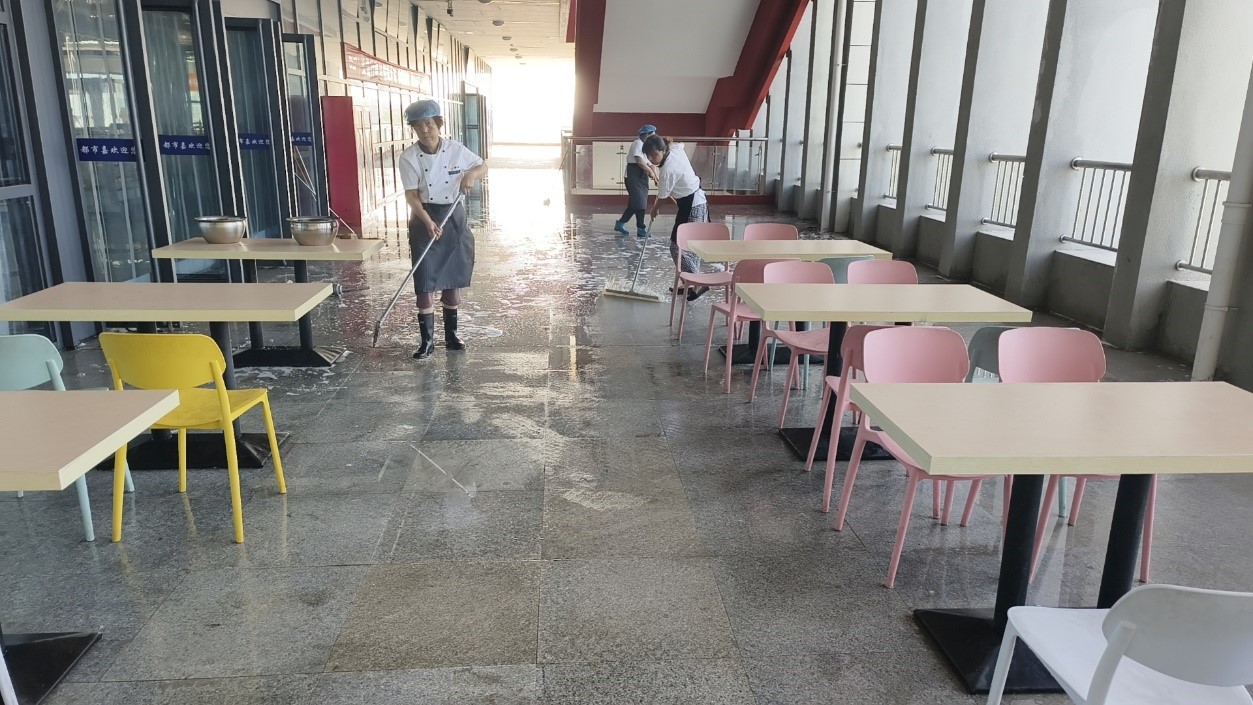开学将近,为营造安全、干净的就餐环境,后勤管理处(集团)提前安排部署,组织餐厅工作人员全力做好开学前的准备工作。