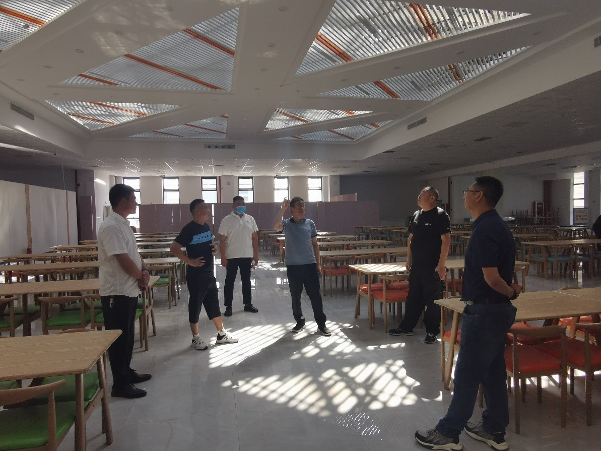 检查组一行人实地查看了学生餐厅、学生公寓、场馆等重点区域开学准备工作情况,详细了解新学期服务保障工作、学生餐厅食品、设施设备安全等方面具体措施落实情况。