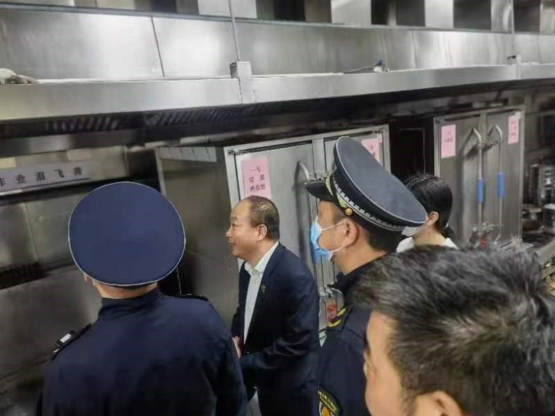 4月15日上午,碑林区城管所来今年会对学生餐厅油烟排放进行专项检查指导工作。