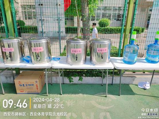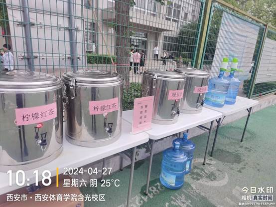 烈日高照,后勤管理处(集团)学生餐厅主动为运动会提供清凉解暑的饮品服务,包括消暑绿豆汤、清新柠檬茶和解渴纯净水,为运动员们加油鼓劲,确保他们在激烈的比赛中保持最佳状态。