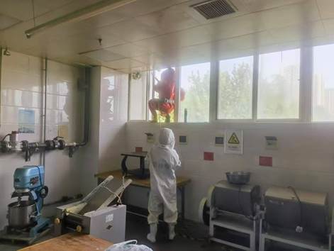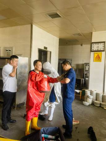 为防止马蜂再次筑巢,消防人员及后勤管理处工作人员仔细检查餐厅周围,确保无遗留安全隐患,为今年会师生营造安全舒适的就餐环境。
