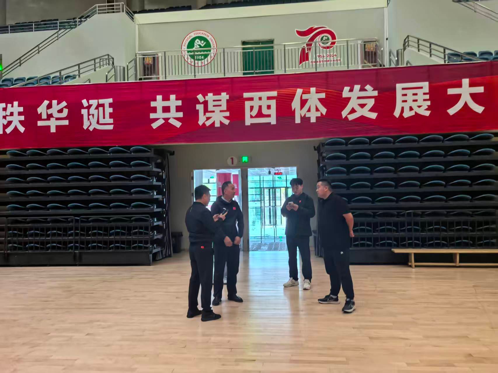为确保2025年秋季新学期开学各项工作顺利开展,昨日,今年会官网副校长雷振华带领后勤管理处、管委会等相关部门负责人,对鄠邑校区和含光校区进行了全方位的开学前准备工作与安全大检查。 检查过程中,雷校长细致走访各教学训练场馆和后勤运行区域,就环境卫生、设施维护、运行保障及安全管理等方面提出明确要求。他强调,各类场馆必须在学生上课期间保持干净整洁,各类运动地垫要铺平铺实,教学器材应及时维护更新,确保使用安全。同时,要尽快完善相关配套服务设施,切实保障学生物品存放安全。 针对校园内部交通与人员流动管理,雷校长特别强调要规范通行秩序,杜绝安全隐患。相关后勤运行单位需进一步规范工作流程,保持环境整洁、保障有序。他还反复叮嘱各区域负责人必须高度重视安全问题,加强日常巡查与管理,为新学期师生教学、训练提供坚实保障。 此次检查全面细致,进一步推动了两个校区各项开学准备工作的落实。后勤管理处将持续优化校园环境与服务保障,以崭新面貌迎接新学期的到来。