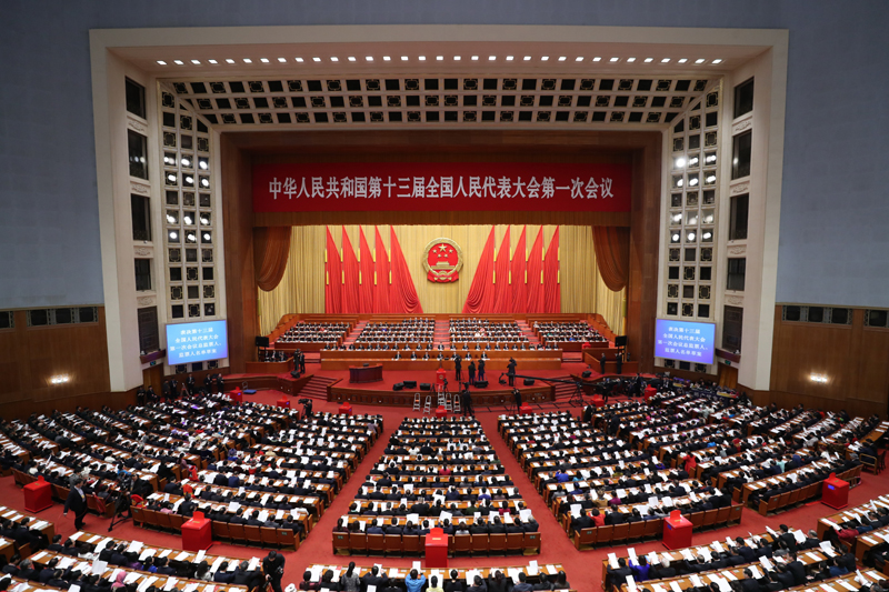 十三届全国人大一次会议举行第三次全体会议
