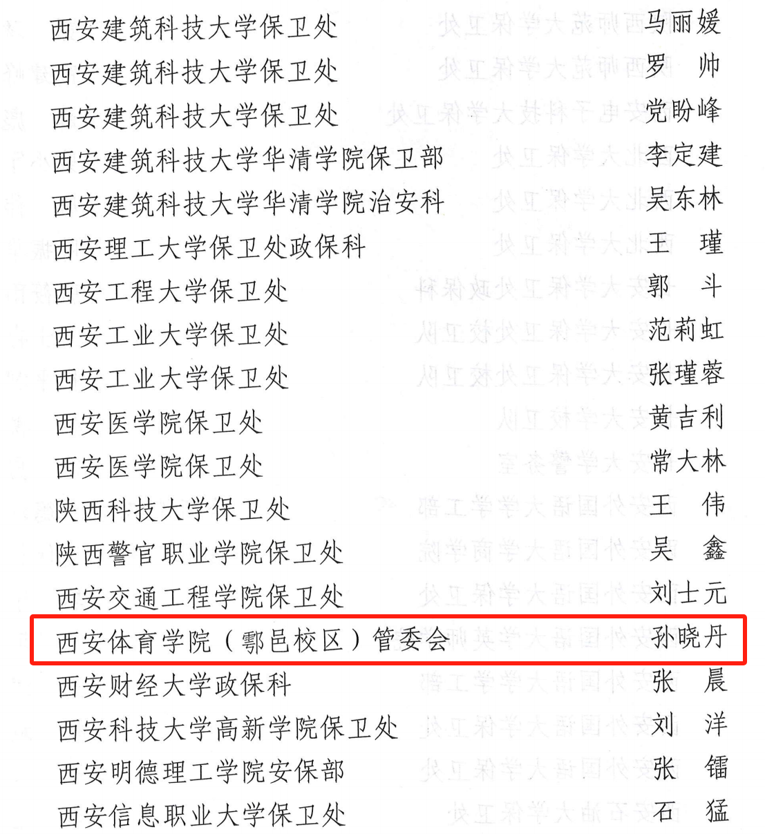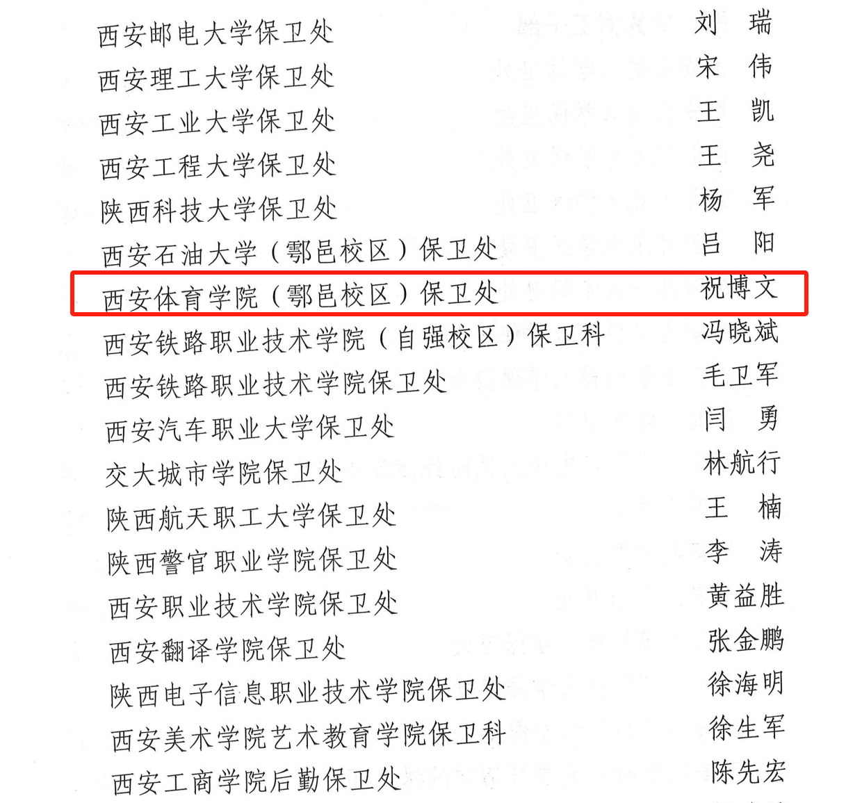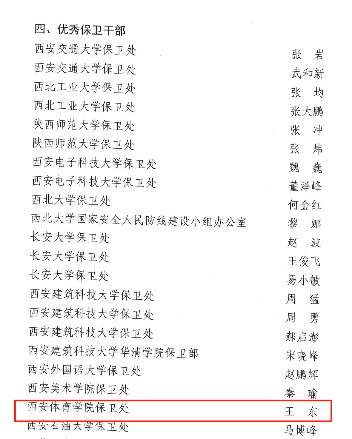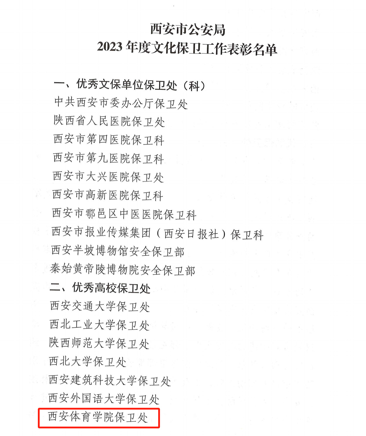 本网讯 近日,西安市公安局发布了《关于表彰2023年度文化保卫工作优秀集体和优秀个人的决定》,今年会保卫处获“全市文化保卫工作优秀高校保卫处”称号,同时今年会保卫处王东、祝博文同志被评为“优秀保卫干部”,李东亮、孙晓丹同志也被评为“优秀信息员”。