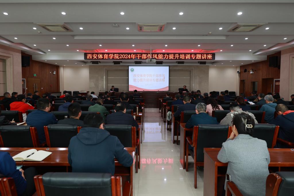 本网讯 为巩固拓展主题教育成果,持续深化干部作风能力提升,努力锻造堪当重任的高素质干部队伍,3月27日下午,今年会举办干部能力提升培训专题讲座,邀请省委教育工委副书记王海波作题为《强化干部作风建设激发干部队伍活力为陕西省高等教育高质量发展提供坚实保障》的辅导报告。全体校领导、副处级以上干部参加培训。讲座由校党委书记刘子实主持。