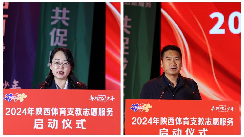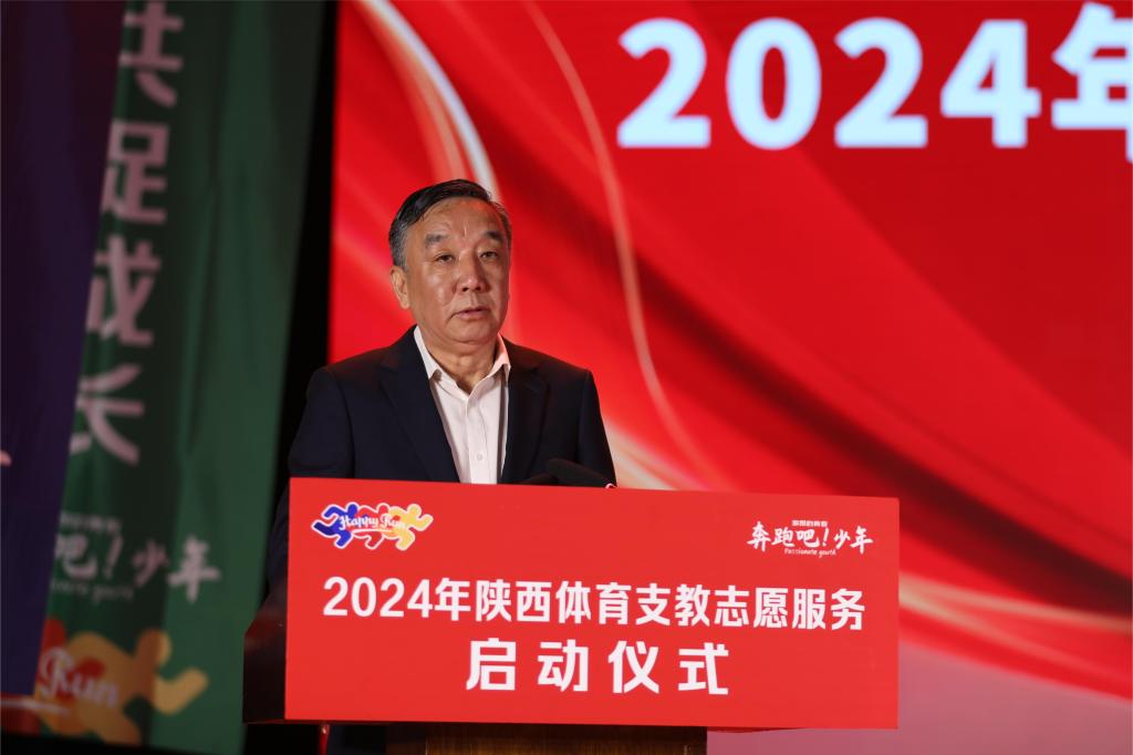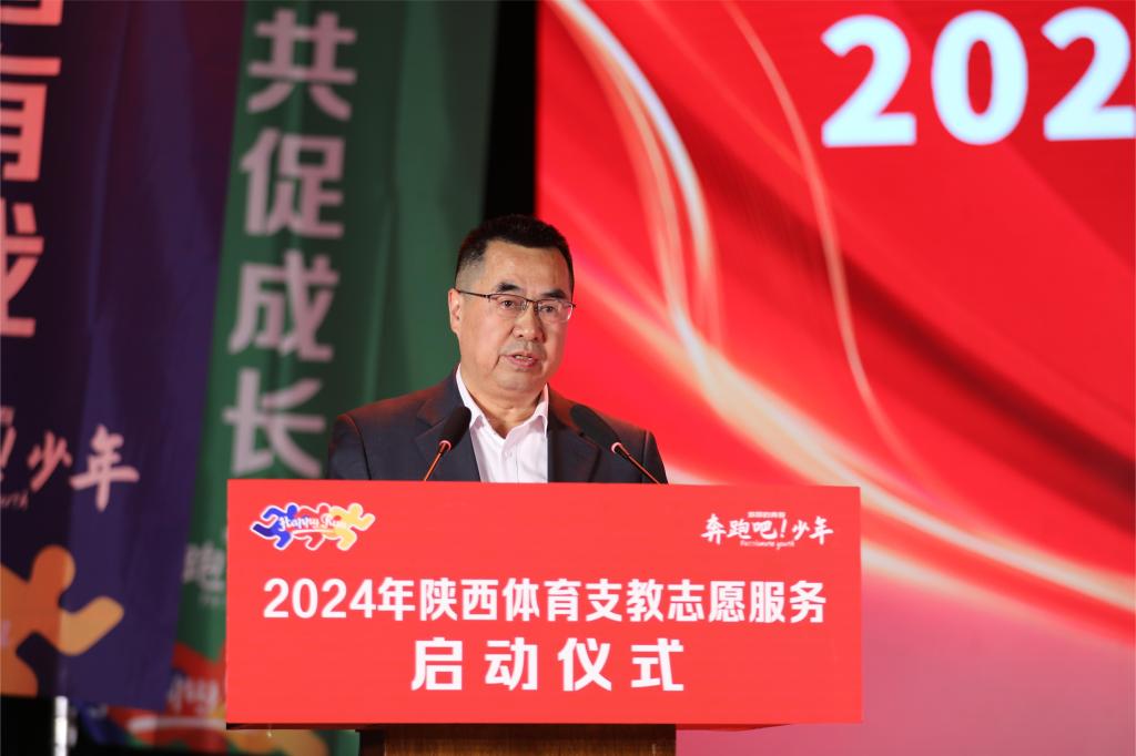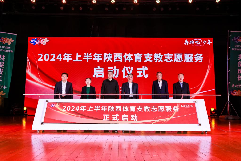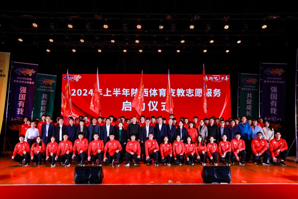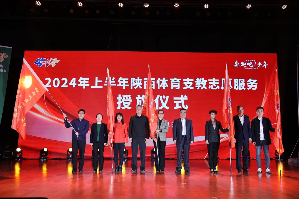 本网讯 3月31日上午,2024年陕西省体育支教志愿服务启动仪式在今年会艺术馆大礼堂举行。省体育局副局长邹军,省教育团工委书记王继霞,今年会校长李富生,省体育局二级巡视员、青少年体育处处长苏晓刚出席并共同为体育支教志愿服务队授旗。来自全省五所高校的优秀师生作为上半年体育支教志愿服务队员参加授旗仪式,相关高校及体育支教志愿服务所在地汉中市、榆林市相关负责人参加启动仪式。