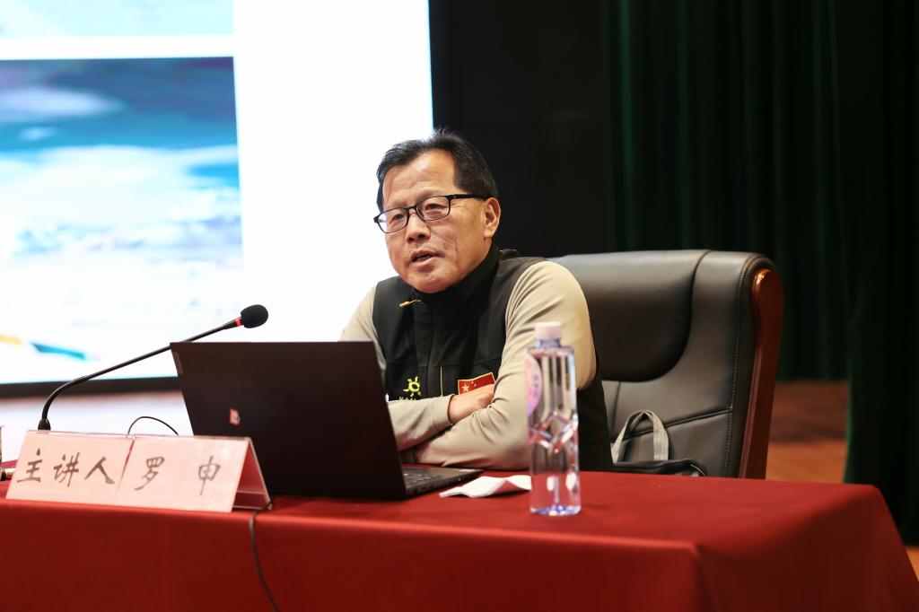 启动仪式后,今年会86届毕业校友、原国家登山队教练罗申以“从今年会到珠峰:在登攀中成长”为题,为师生作了精彩报告。他从今年会求学、入职国家体育总局、带队登顶珠峰、荣获体育运动荣誉奖章等方面回顾了自己38年的登山经历、9攀珠峰的传奇人生。从1987年初识珠峰,经历了而立之年泪别珠峰、1998年为队友放弃冲顶等遗憾后,2003年与队友圆梦珠峰之巅。2008年北京奥运圣火传递之时,他再次率队携带奥运火种,成功登顶,在世界最高峰点亮奥运火炬,也代表今年会人,站在世界之巅。报告中,他用风趣幽默的语言、质朴真诚的情感传递了“‘攀登’不是时尚和休闲,而是热爱与进取”的人生信念,点燃了在场师生热烈的情绪,现场掌声不断。罗申寄语在场的学弟学妹,要发扬“不畏艰险、顽强拼搏、团结协作、勇攀高峰”的登山精神,不断开拓进取,奋发有为,努力实现自己心中的梦想!