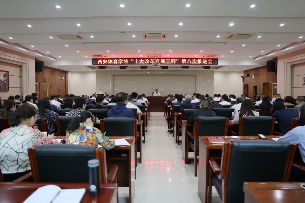 李富生指出,经过两个月的鏖战,“十大改革发展工程”取得了实质性成效和阶段性成果,呈现出十个亮点:党委行政同向发力,十大工程成效显现;五十项行动强力推进,阶段性成果初步形成;鄠邑校区教学综合楼、七号学生公寓和综合训练馆建设强力推进;校风、作风、教风、学风等有了较大改观,争做“十种人”蔚然成风;建校70周年系列活动正式启动,励志教育、师德教育取得成效;七场赛事全部落地,筹备工作正有序落实;体育基金会正式批复,成立大会正积极筹备;“鄠建作风”广泛宣传,克难而进、务实担当等正能量正在占据主流;“鏖战之星”评选活动启动,比学赶帮局面初步形成;搬迁工作方案已经成熟,部分工作正在积极实施。成绩固然可喜,但也要清醒认识到学校当前改革发展进入深水区所依旧存在的十个问题和不足,在造血创收、深化改革、加强作风建设、做好就业工作、提升安全意识、加强督导问责、打破顽瘴痼疾等方面全面发力、强力推进。