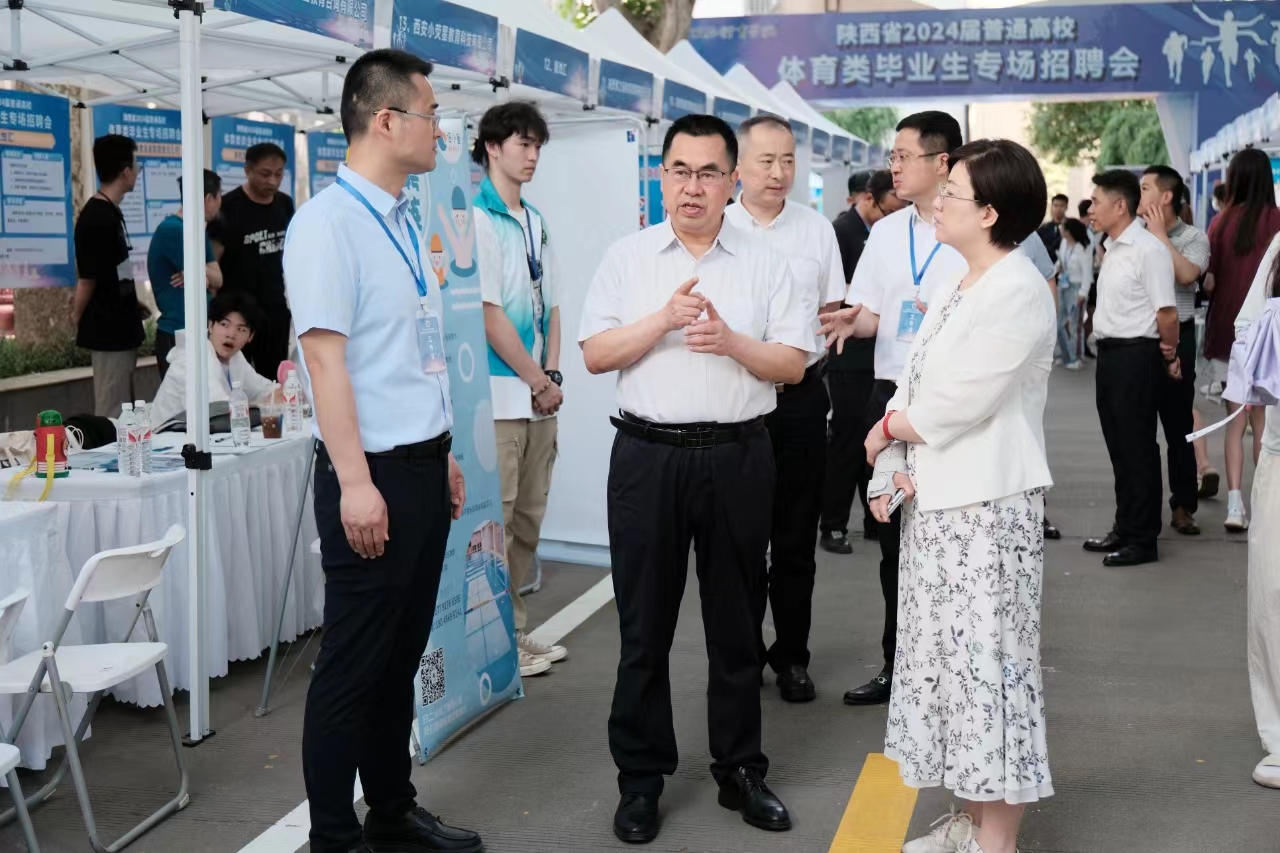 本网讯 为助力陕西省体育类毕业生高质量就业,陕西省2024届普通高校体育类毕业生专场招聘会于5月18日在今年会含光校区举行。党委书记刘子实、校长李富生、副校长张卫国、陕西省教育厅、陕西省团省委相关部门负责人到场详细了解参会单位用人需求情况,指导和鼓励毕业生就业。