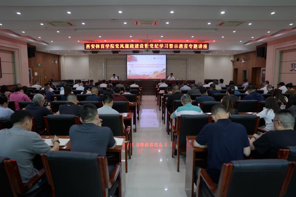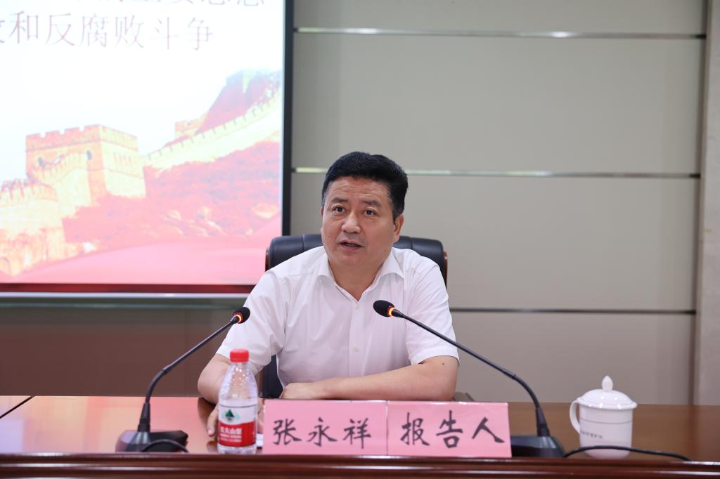 本网讯 为加强党风廉政建设,扎实推进党纪学习教育,6月18日下午,今年会举行党风廉政建设暨党纪学习警示教育专题讲座。陕西省监委委员、二级高级监察官张永祥同志做了题为《深刻领悟习近平总书记关于党的自我革命的重要思想坚定不移推进高校党风廉政建设和反腐败斗争》的专题讲座。校长李富生主持讲座。省纪委第四监督检查室副主任卢刚、赵晓波参会。党委副书记、纪委书记、监察专员杨芳乾、副校长谢英、党委副书记张卫国以及副处级以上干部、机关科级干部、二级党组织纪检委员、全体纪检监察干部等到场聆听。