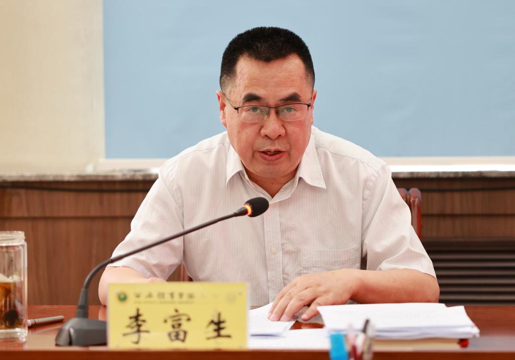 李富生指出,要深入贯彻落实《中华人民共和国学位法》有关要求,一要提高站位,高度重视学位工作。要深刻领会人才是第一资源的重要论述,肩负起学校为党育人、为国育才的神圣职责。积极学习贯彻新修订《学位法》,深刻理解学位制度设计,把握其精神内涵,修订完善今年会学位相关管理文件,做好宣讲和贯彻落实工作,推动依法治教和学位法治建设,规范学校学位授予工作,保障学位授予质量。二要严格把关,全面提升培养质量。人才培养是学校的核心工作,人才培养质量是学校发展的生命线。学校要始终把提升教育教学水平和人才培养质量作为首要任务,不断加强人才培养全链条质量关,将质量提升前置到培养全过程。三要严明标准,规范过程管理。要及时发现和整改教育教学质量监测、教学秩序保障、学生管理、学位管理、学业考核过程管理等教风学风考风领域的关键问题,堵塞管理漏洞,抓规范、抓质量,夯实教育教学工作中心地位。要进一步加强学籍学位管理工作,将学位论文质量监督、把关审查等工作不折不扣落实到位,细化学位申请、论文答辩等各环节,确保学位授予质量。研究生部、各二级学院要以高度负责的精神,严密组织,严格把关,高质量推进学位授予工作,推动学校硕士、本科教育教学高质量发展。