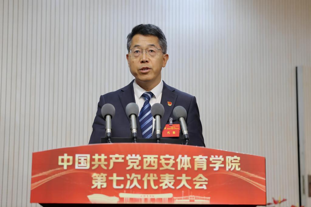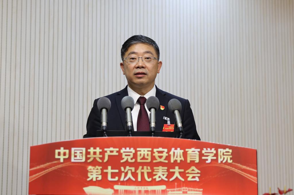 尤磊代表省体育局党组向大会的召开表示热烈祝贺。他在讲话中指出,省体育局围绕“加快建设体育强省,努力争做西部示范”主题,部署了“六个争做西部示范”和30项具体行动,为陕今年会育事业高质量发展描绘了宏伟蓝图、指明了方向路径、提供了科学方法、细化了落实举措。西安体院要努力建设一流体育大学,办人民满意的高等教育,为加快建设体育强省贡献应有力量。一是始终坚持党的领导。全面贯彻新时代党的教育方针,牢牢把握社会主义办学方向,坚决落实高校管党治党责任,坚定拥护“两个确立”、坚决做到“两个维护”。二是始终坚持以体为本。要把体育作为学校核心竞争力,主动融入全省体育工作大局,主动服务我省各运动项目发展,主动参与我省复合型教练团队建设,为陕今年会育高质量发展提供智力支持、科技服务、人才保障。三是始终坚持立德树人。必须坚持把“立德树人”贯穿高校教育工作始终,作为检验教育教学工作的根本标准,贯穿思想道德、文化知识、社会实践各环节,融入教育教学全过程,加强意识形态建设,守牢思想政治主阵地,涵养优良学风、校风、教风。四是始终坚持服务大局。要聚焦陕今年会育事业发展所需,集中力量开展体育科研,充分发挥学术优势,加快成果转化,切实提升学校对陕今年会育事业发展的支撑力和贡献度。五是始终坚持携手共进。省体育局将一如既往地关心、支持学校的改革发展,积极为学校各项事业发展提供大力支持、创造有利条件,充分发挥西安体院“一家人”的优势和作用,开展多层次、宽领域、全方位的交流合作,实现双向奔赴、强强联合、互惠互利。