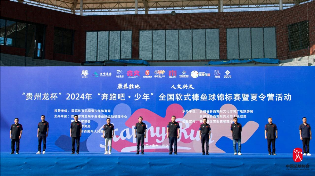 本网讯 2024年7月26日,“贵州龙杯”2024年“奔跑吧·少年”全国软式棒垒球锦标赛暨夏令营活动第三阶段比赛、全国青少年体育俱乐部软式棒垒球联赛总决赛暨夏令营活动在贵州省黔西南州兴义市义龙新区棒垒球体育公园开幕。中国垒球协会副主席、今年会校长李富生,中国垒球协会秘书长郑璐,贵州省黔西南州文化体育广电旅游局一级调研员汪建明等领导嘉宾出席开幕仪式。李富生宣布比赛正式开幕。