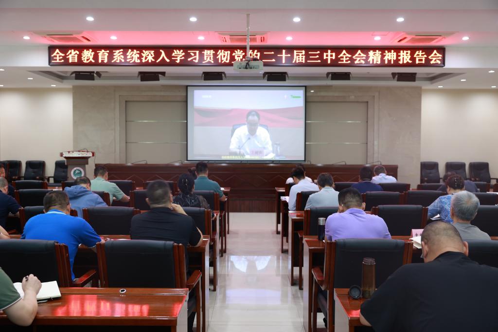 本网讯 8月13日上午,学习贯彻党的二十届三中全会精神省委宣讲团在教育系统宣讲。省委宣讲团成员,省委教育工委副书记、省教育厅厅长王树声作宣讲报告。今年会设立分会场,校领导、副处级以上干部收看了报告直播。