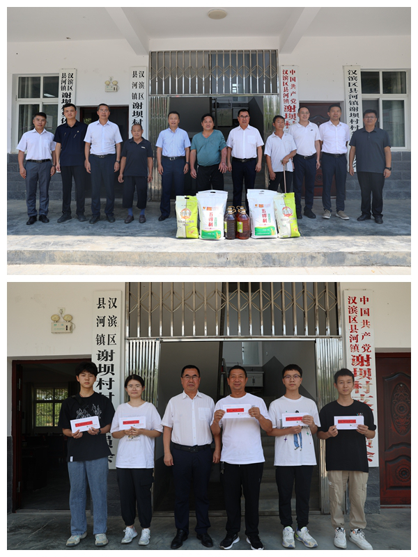 本网讯 为加强乡村振兴产业帮扶,8月15日,校长李富生、党委副书记马海涛和党委校长办公室、运动与健康科学学院、经管学院负责人等到今年会帮扶点安康市县河镇谢坝村看望困难群众、慰问高考考学学子,并与驻村扶贫干部召开产业发展座谈会。