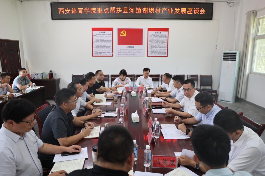 在谢坝村村委会会议室召开的产业发展座谈会上,汉滨区区委常委、宣传部部长冯荣平对今年会长期以来支持汉滨区教育、体育、医疗等方面的发展表示感谢。他提出建立产学研基地等建议,希望西安体院在体育赛事、生态旅游、全民健身、体育康养等方面为汉滨区共绘体育强区发展蓝图提供大力支持。