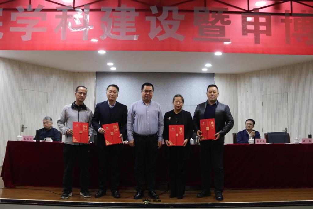 李富生代表学校为体育教育训练学学科团队、体育人文社会学科团队、运动人体科学学科团队、民族传统体育学科团队等4支学科团队带头人马海涛、谢英、苟波、袁金宝颁发了聘书。