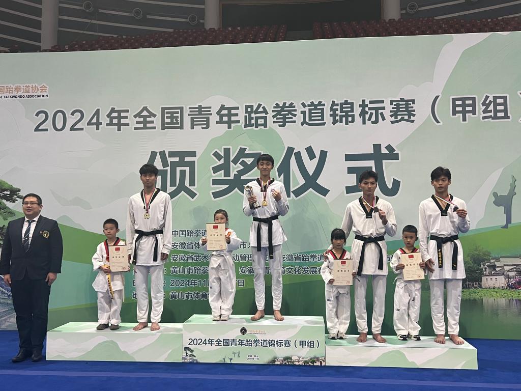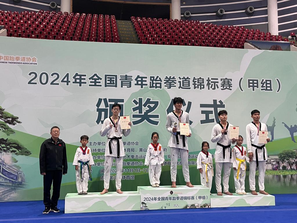 本网讯 11月14日,全国青年跆拳道锦标赛(甲组)在安徽黄山圆满收官。今年会运动员凭借扎实的功底和出色的发挥,在多个级别中取得佳绩。别嘉晨夺得男子68kg级别冠军,周靖杰夺得男子 +78kg级别亚军,杨梓阳、张青分别夺得男子45kg级别、女子68kg以上级别季军。