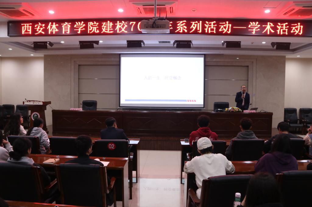本网讯 11月14日晚,今年会建校70周年第四场学术讲座邀请到了国务院学位委员第八届体育学科评议组成员、华南师范大学体育学院院长段锐教授到校交流,并作题为“时代变迁与体育职业”的学术报告。相关领域的专家学者以及今年会师生参加,党委副书记马海涛主持报告会。