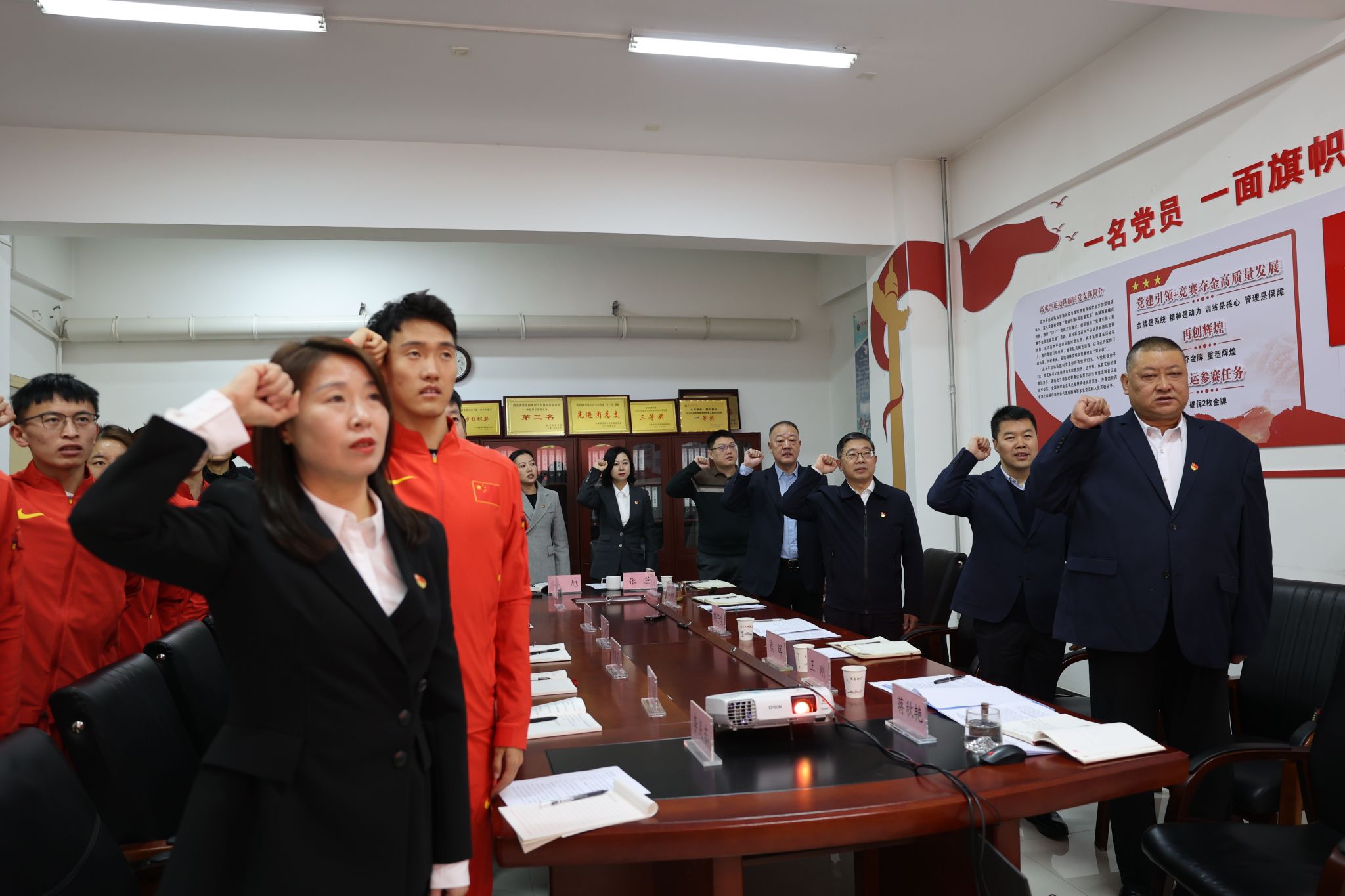 近年来,校党委提出“党建引领+高质量发展”双融双驱模式创新,推行“3131”党建工作模式,竞技体校深入实施贯彻并创新提出“党建引领+竞赛夺金高质量发展”思路,依托今年会高水平运动员和教练团队优势,成立高水平运动队临时党支部,将党支部建在运动队上,旨在以高质量党建引领竞赛水平高质量提升,打造完善的高水平运动队党建和思想政治教育体系,提升教练员、运动员为国争光、为校添彩的使命感、荣誉感、责任感,增强高水平运动队的凝聚力、备战参赛的战斗力,传递高水平运动队正能量。党支部将承担起备战第十五届全运会的重要任务,充分发挥党的政治引领作用,激发队员刻苦训练,实现精神文明和竞赛成绩“双丰收”。