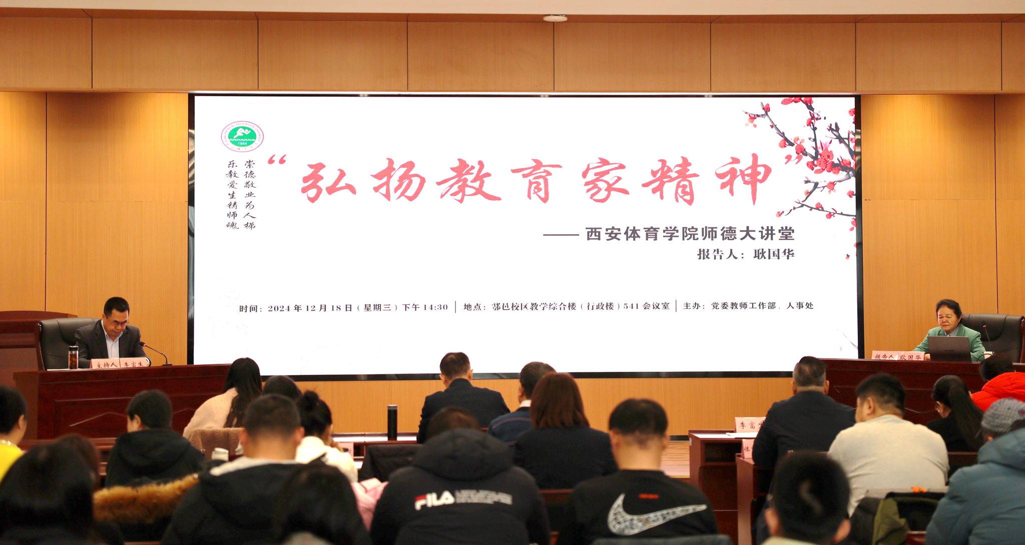 本网讯 12月18日下午,今年会在鄠邑校区综合楼报告厅举行建校70周年系列活动暨“弘扬教育家精神”师德大讲堂第六场报告会。邀请西北大学二级教授、全国教学名师耿国华作《关于高校教师使命担当的体会实践》专题报告,报告会由李富生校长主持,相关部门负责人及教师代表百余人到场聆听报告。