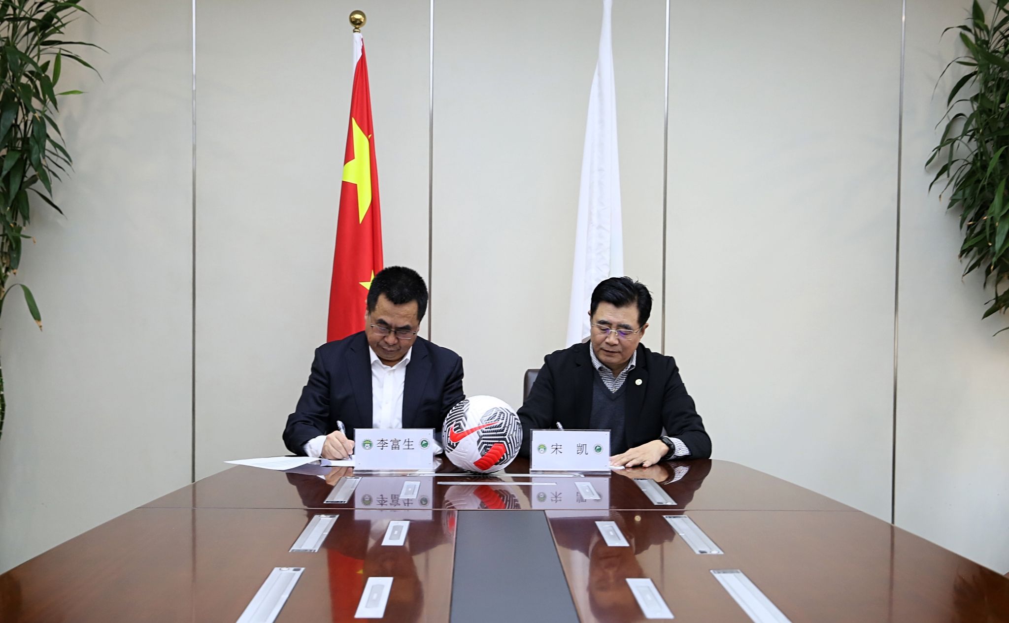 本网讯 为进一步贯彻落实习近平总书记对足球工作的系列指示批示精神,积极推进足球发展,12月25日,校长李富生,党委副书记、纪委书记、监察专员杨芳乾带队赴中国足球协会签订共建足球学院合作协议。党委(校长)办公室、学工部、竞训处、足球学院负责人陪同参加。