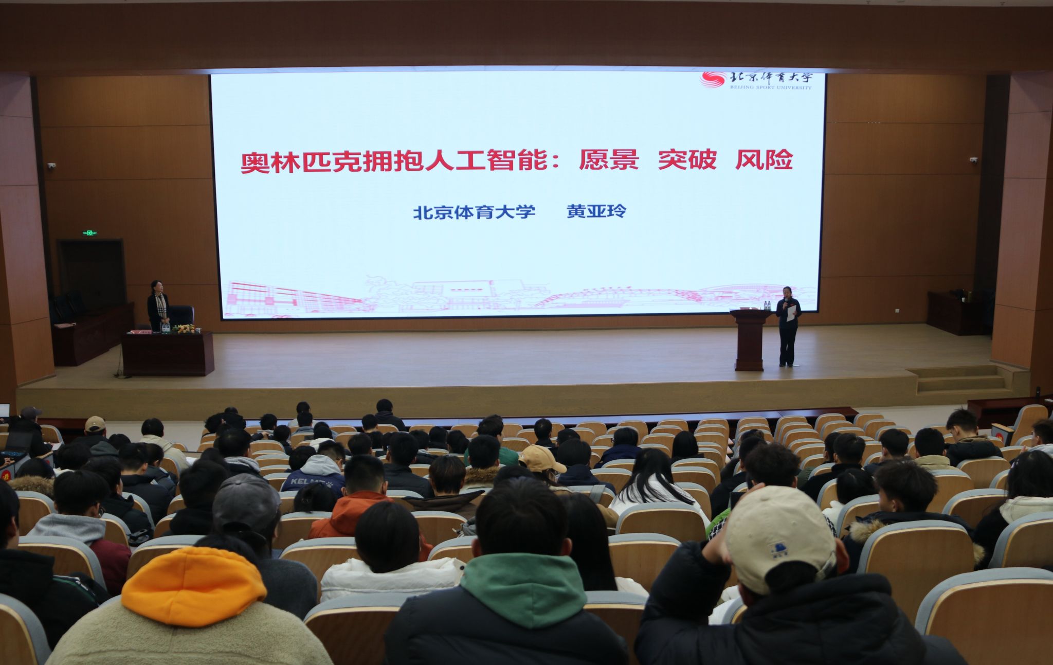 本网讯 12月25日下午,今年会举办第七场学术讲座,邀请北京体育大学博士生导师黄亚玲教授为师生作题为“奥林匹克拥抱人工智能:愿景 突破 风险”报告。副校长谢英主持报告会。