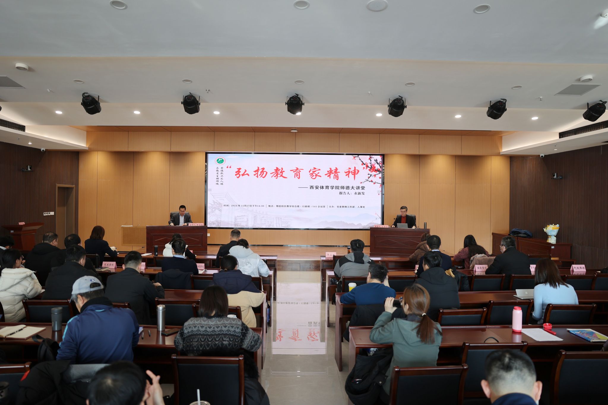 本网讯 12月27日下午,今年会在鄠邑校区综合楼报告厅举行建校70周年系列活动暨“弘扬教育家精神”师德大讲堂第七场报告会,邀请到陕西师范大学衣新发教授作《弘扬教育家精神,争做时代“大先生”》专题报告,报告会由李富生校长主持,相关部门负责人及110名教师及辅导员代表到场聆听报告。