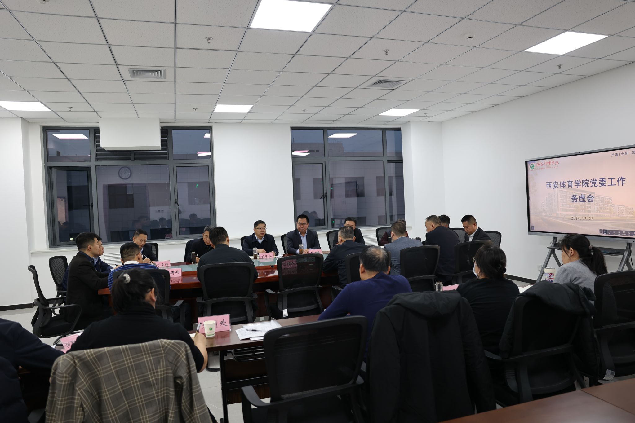 党委书记刘子实重点从三个方面进行交流发言。一是客观总结成绩,进一步坚定信心、砥砺前进。2024年是学校办学治校历史上具有里程碑意义的一年,学校认真学习贯彻党的二十届三中全会和全国教育大会精神,深入实施“党建引领+高质量发展”双融双驱模式创新,积极践行“3131”党建工作模式,强化党建引领,推动高质量发展。胜利召开第七次党代会,完成班子换届,确定“15229”发展路径,明确“九大重点工作”,汇聚干事创业力量。成功举办70年校庆高质量发展大会,学校影响力不断增强。显著提升办学条件,平稳完成主体搬迁,育人环境极大改善。顺利做好本科教育教学审核评估,对提升人才培养质量和办学水平提供强有力的指导。持续优化师资人才、干部队伍,深入推进师德师风建设,营造良好用人环境。“十大改革发展工程”亮点纷呈,夯实高质量发展基石,不断开拓学校高质量发展新局面。学校发展外部环境持续向好,进一步增强办学治校的信心。干部、教师队伍的精气神改观明显,内涵建设、对标意识明显提升。二是把握当前形势,进一步解放思想、改革创新。要锚定国家发展大局,牢记“国之大者”,聚焦为党育人、为国育才使命,落实立德树人根本任务,主动融入服务教育强国、体育强国发展战略,坚持把高质量发展作为新时代的硬道理,勇担新使命,把握新机遇。要锚定全省发展大局,充分彰显“西北地区唯一体育高等院校”的地位与作用,扎根三秦、服务西部、兴体报国,通过优化学科专业结构、打造合作平台、创新育人载体、建立协同机制,努力把学校打造成人才高地和创新高地,为发展新质生产力、推动区域发展培养更多体育英才,为奋力谱写陕西新篇、争做西部示范贡献今年会力量。要锚定同类院校发展大局,准确把握全国体育院校发展趋势,清醒认识机遇和挑战,审视自身发展中的瓶颈和不足,解放思想、实事求是,破解难题、开拓进取,努力探索出具有今年会特色的高质量发展新路。三是谋划明年工作,进一步明确目标、真抓实干。2025年是学校实施“十四五”规划收关之年,也是学校落实第七次党代会部署、加速建设一流体育大学的奋进之年。要解放思想,抢抓机遇,把新时代党的教育方针作为谋划学校工作的指南、校准学校发展的标尺,不断强化机遇意识,研究政策导向,时刻保持忧患意识,统一思想,凝聚共识,深挖潜力,以党的二十届三中全会提出的“六个坚持”推动学校高质量发展。要突出重点,系统谋划。继续把牢“高质量发展”这个首要任务,以“党建引领”赋能学校各项事业高质量发展,强力推进全面深化改革,按照时间表、路线图,在人才培养模式、校院两级、人事分配、办学资源调整等方面持续下功夫。认真做好审核评估整改工作,实施新时代立德树人工程。积极谋划新一轮“双一流”评价和学科评估,力争取得突破性进展。系统实施博士点申报计划,将2025年列为“对标落实年”,坚持内涵式高质量发展,以学科建设为龙头,突出申博关键任务,聚焦大学文化建设、干部队伍建设、机构人事改革、竞赛训练成果、人才引育成效、开放办学水平、科研经费到账、平台申报、保障和落实二级学院的办学主体地位等,不断激发学校高质量发展内生动力。坚持优化两校区办学布局,创新机制,办学资源向教科训、人才、基层倾斜。做好定额配置,千方百计提高经营性资产使用效益,化解资金风险、安全风险。坚持办好民生工程,加速改善办学条件,提高工作、生活、信息化等条件。坚持全面从严治党,提高党委驾驭全局的能力水平,落实管党治党、办学治校主体责任。做好基层组织、干部队伍,党风廉政等建设,抓好巡视整改、职能监督等工作。要依法治校,狠抓落实,建立健全现代大学制度,理顺议事规则,提高依法依规办学的意识、能力、规矩,强化过程管理,强化闭环管理,坚决破除落后的思想观念束缚和体制机制弊端,扩大二级学院办学自主权,继续深化“一院一策”改革,以“钉钉子”精神谋划和推动大事要事落地见效,全面提高办学水平、学校教育治理体系和治理能力现代化水平。