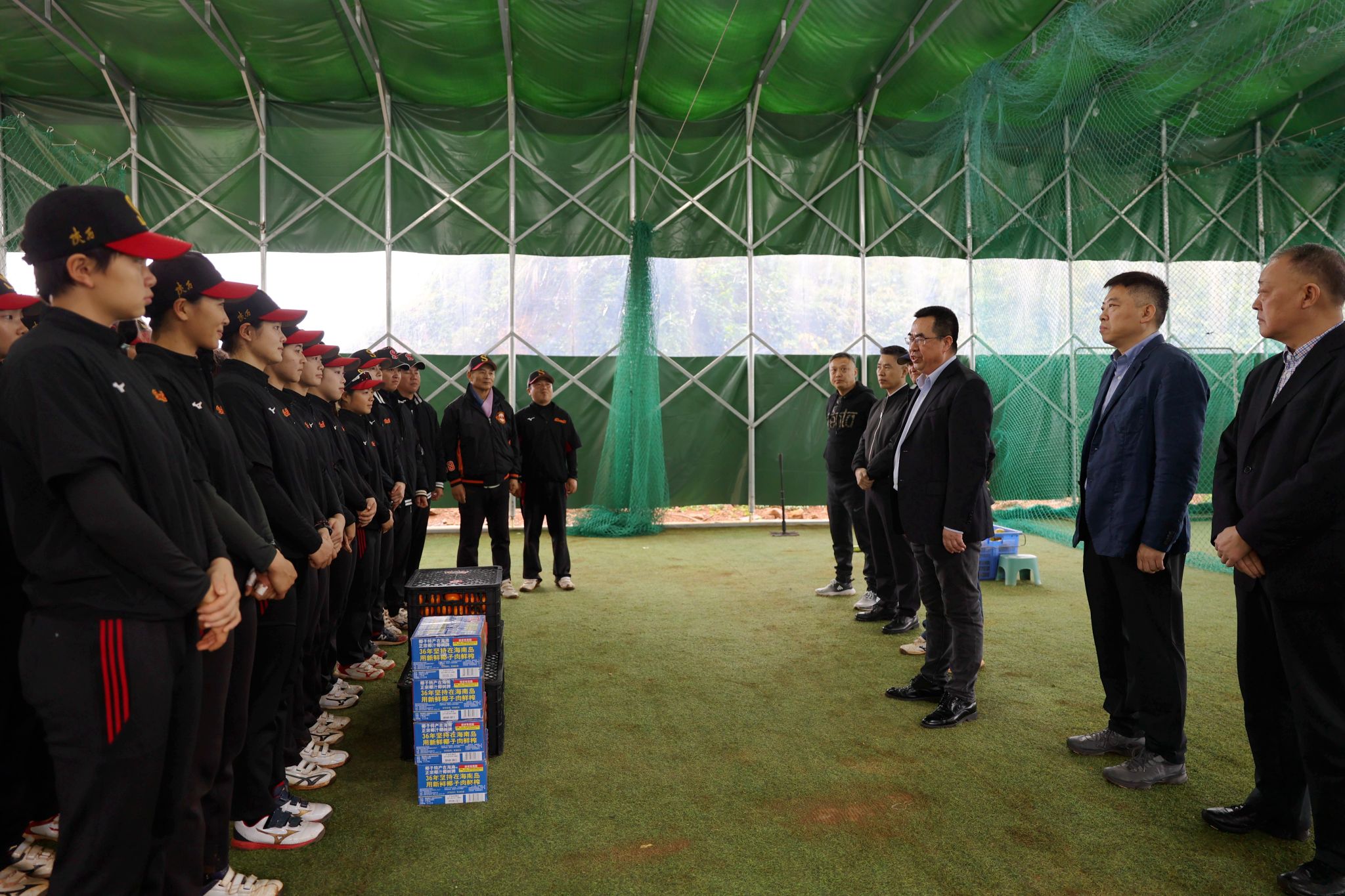 在海口训练基地,李富生一行实地查看了女垒训练基地的场地设施、生活保障情况,观看了队员训练,听取了主教练彭晓林的全面汇报。李富生表示,女垒队员昂扬向上的斗志、不怕吃苦的精神、敢打敢拼的劲头,让人感动。省队校办一年来,女垒队取得显著的成绩,不仅在全国青年锦标赛上获得亚军,也成为陕西省第一支进入全运会决赛的集体球类项目,一名队员被输送到国青队,四名队员顺利考入今年会成为在校大学生,竞赛水平逐步提高,后备梯队逐步夯实,为促进本科教育教学和提升人才培养质量探索出了一条体教融合的新路径。他强调,今年会未来看女垒,各相关单位要全力做好训练保障,提升女垒的训练、生活条件,让“秦岭腊梅”绽放世界舞台。