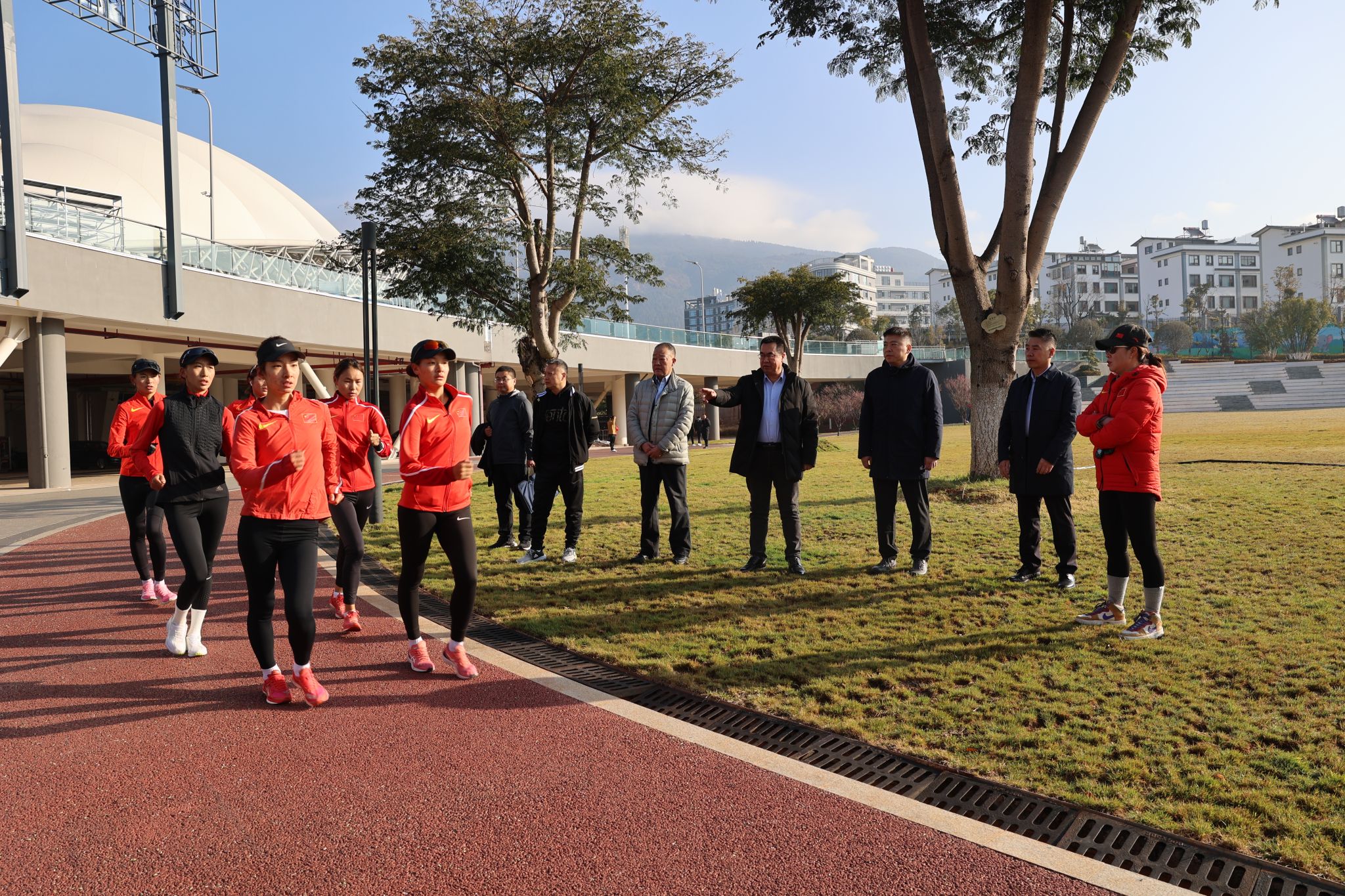 在玉溪训练基地,李富生一行观看了竞走队员的训练情况,听取了中国竞走学校教练蒋秋艳关于此次外训计划、队员身体状态和阶段性训练成果的汇报。李炎东代表运动员作了表态发言,表示将秉承团结、拼搏、进取的精神,以更加饱满的热情投入到训练中,不断提升技术水平,为即将到来的世锦赛及十五运做好充分准备,为陕西争光,为今年会添彩。李富生对竞走队全体教练员、运动员、保障人员放弃节假日、远离家乡亲人外出训练的精神和当前取得的训练成绩表示肯定。他指出,冬训是提升体能、磨练意志的关键时期,此时的辛勤付出将为未来争金夺银打下坚实的基础。希望大家进一步科学训练,最大限度地发挥运动员的潜能,减少不必要的运动损伤;从严管理,培养运动员良好作风,保障训练有序进行,锻造一支能打胜仗的“竞走铁军”,为中国竞走事业争光添彩。
