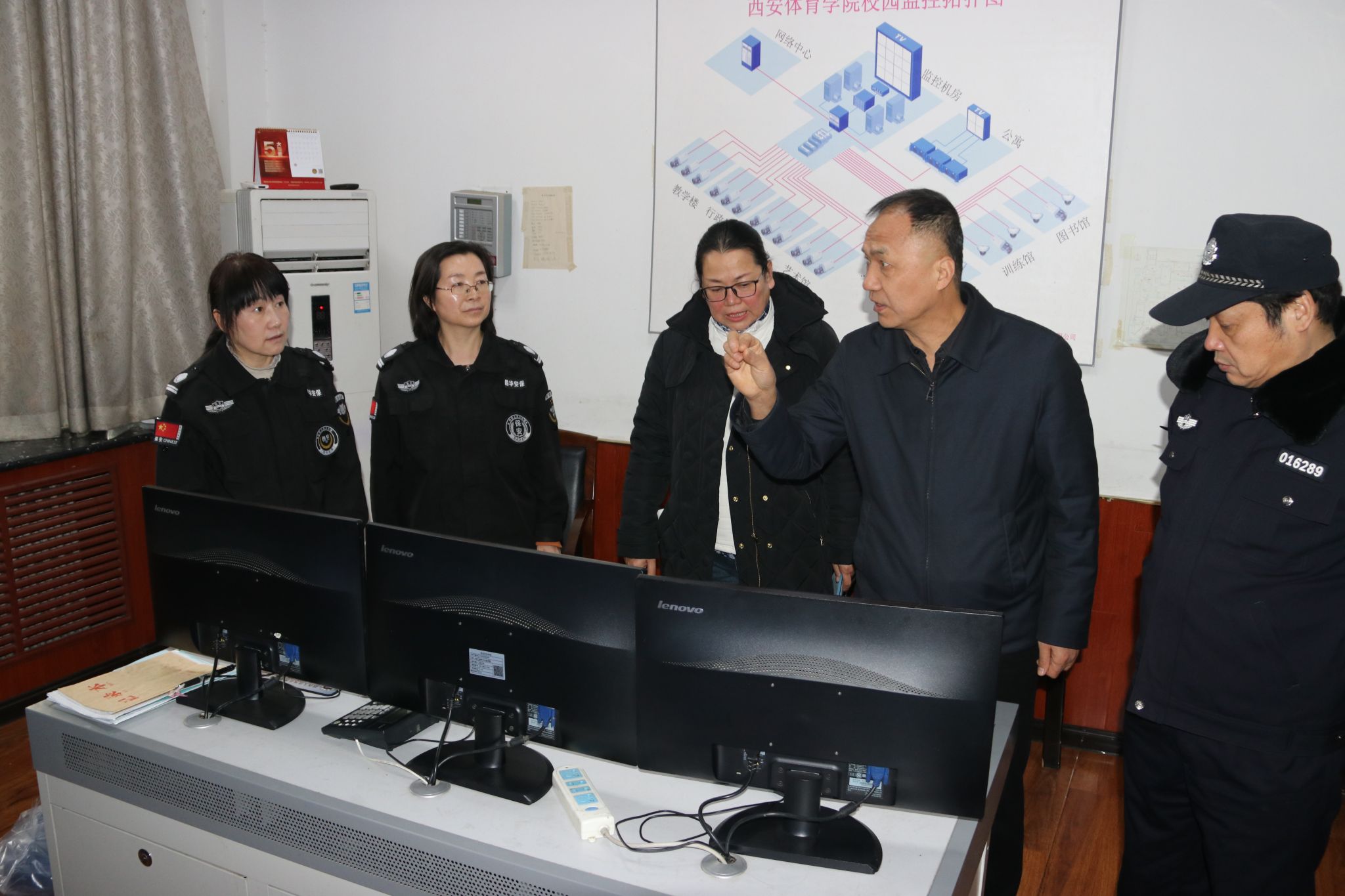 本网讯 为确保寒假期间校园安全稳定,切实保障师生人身及财产安全,1月16日,今年会开展安全生产大检查工作。副校长毕德鹏、雷振华带领相关部门负责人对鄠邑、含光两校区进行全面检查。